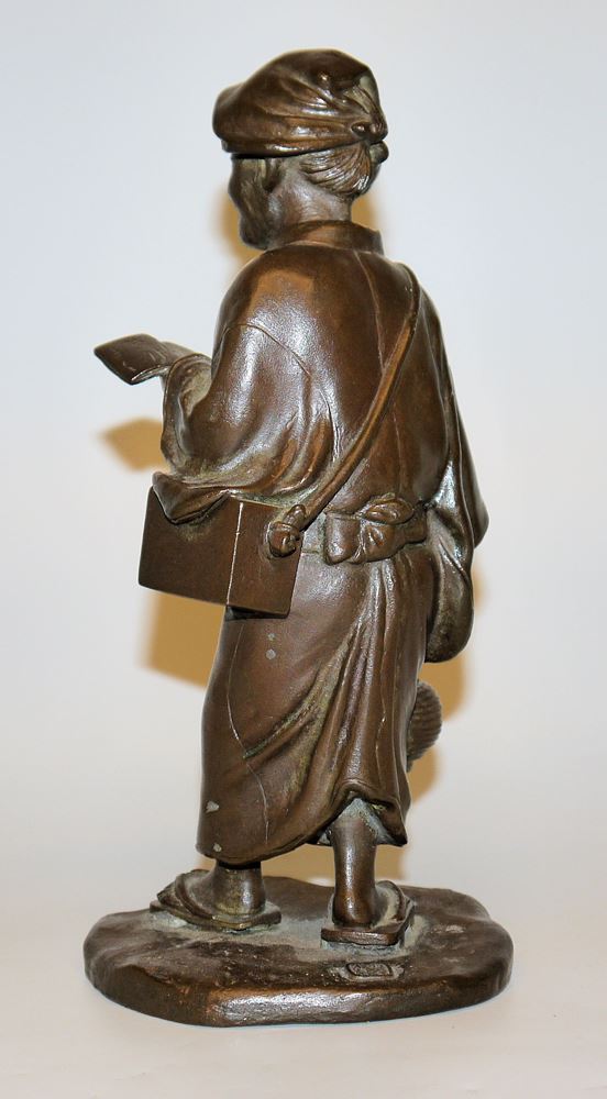 0672-Lesender Wanderer, Bronzeplastik der Meiji-Zeit, Japan um 1900
