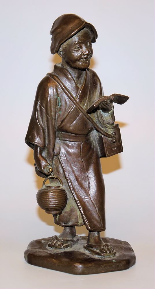 Lesender Wanderer, Bronzeplastik der Meiji-Zeit, Japan um 1900