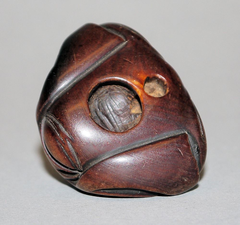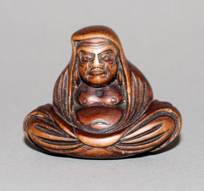 Netsuke des meditierenden Daruma aus Buchsbaum, Japan, Mitte 19. Jh., Prov. Slg. Hanns Jatzlau