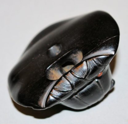 Frosch auf Lotusblatt, Netsuke aus Ebenholz, Japan 19. Jh., Prov. Slg. Hanns Jatzlau