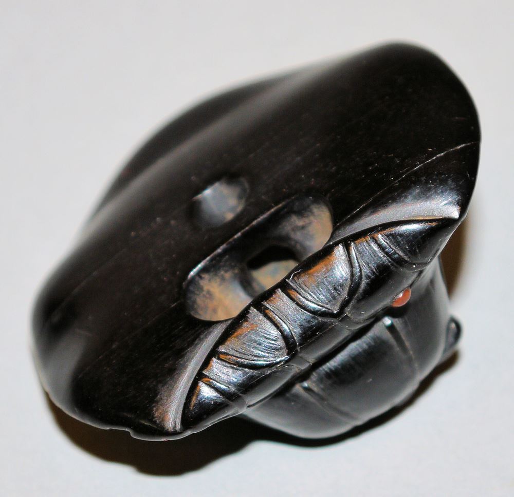 0679-Frosch auf Lotusblatt, Netsuke aus Ebenholz, Japan 19. Jh., Prov. Slg. Hanns Jatzlau
