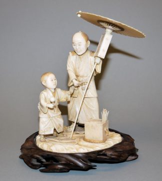Maler bei der Arbeit, Okimono aus Holz und Elfenbein mit CITES, Meiji-Zeit, Japan um 1900