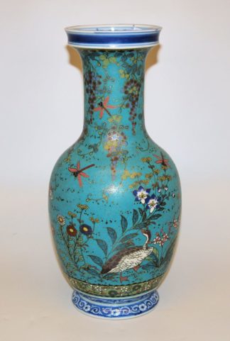Zwei feine Cloisonné-Kännchen gleicher Form, einmal mit Blumenwiese, einmal mit Drachen/Phönix-Motiv in Blattkartuschen (H mit Bügeln 13,5 cm) sowie eine quaderförmige Kanne aus Yixing-Ton mit Zinnmantel und Jadegriffen, ein Bodenbruch im Tonkern (H 11 cm)