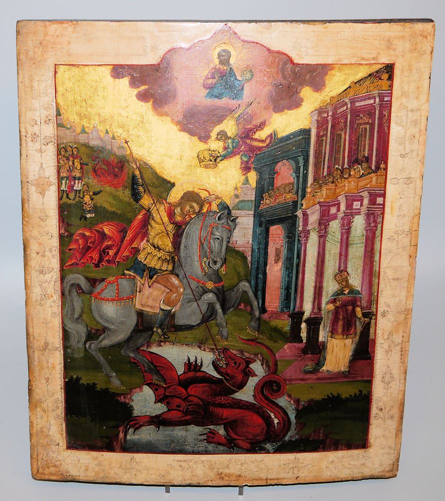 Ikone mit dem Hl. Georg, dem Drachentöter, Zentralrussland, um 1800 mit Expertise