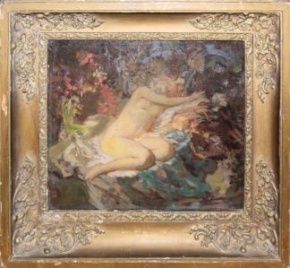0717-Historismus-Maler, Ländliches Idyll, großes Ölgemälde um 1860, unrestaurierter Speicherfund, im sog. “niederländischen Rahmen”