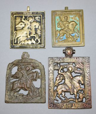 0725-Acht orthodoxe Bronze-Ikonen, Teile bzw. Fragmente, Russland 17.-19. Jh.