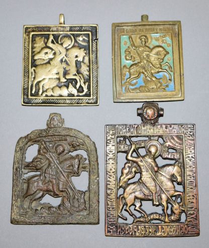 0726-Vier Bronze-Ikonen des Heiligen Georg, Russland 17.-19. Jh.