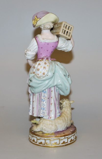 0735-Schäferin mit Vogelkäfig, Lamm und Liebesbrief, Kgl. Meißen, 1850-1924