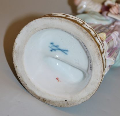 Schäferin mit Vogelkäfig, Lamm und Liebesbrief, Kgl. Meißen, 1850-1924 Entwurf Michel Victor Acier 1777, Porzellanplastik mit polychromer Malerei und Goldstaffage, Knaufschwerter, geritzte Mod.-Nr. F 73, Pressnummer 74, 1. Wahl, Vogelschnabel und Hutkrempe etwas bestoßen, H 18,3 cm, Literatur: Bergmann, Sabine und Thomas: Meissener Figuren, Bd. II, Erlangen, 2014, S. 57