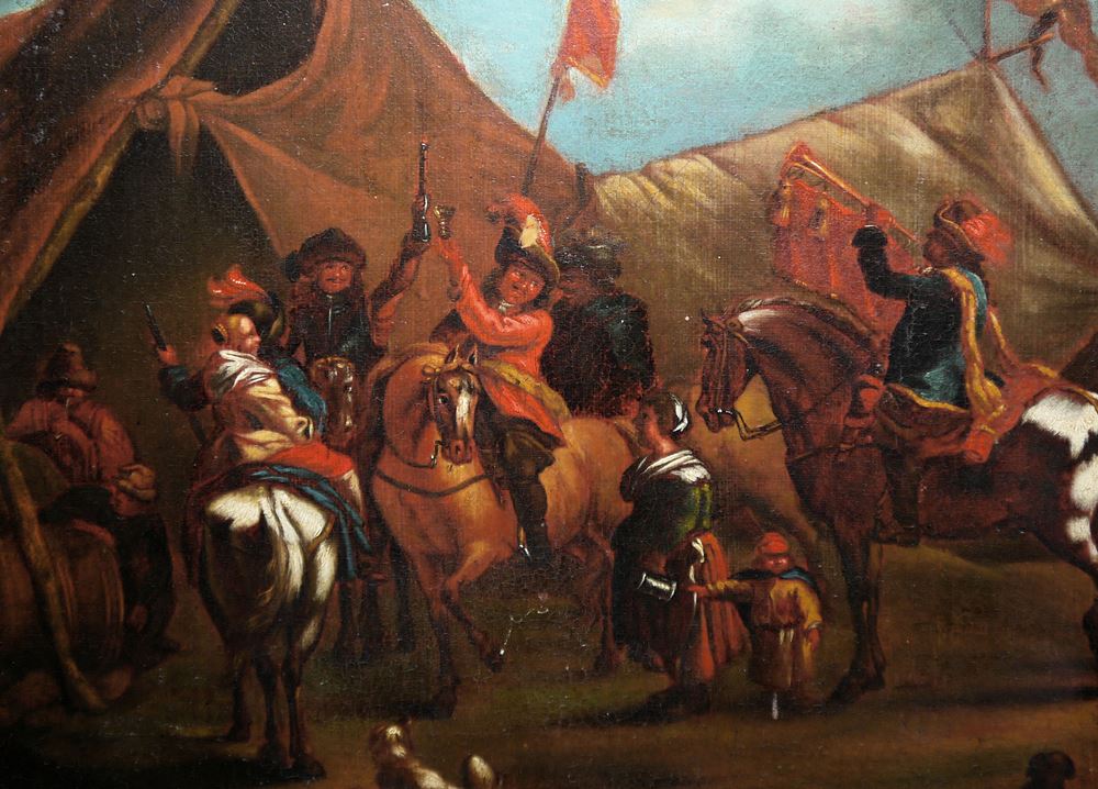 Georg Phillipp Rugendas unsign./ zugeschrieben, Beim Marketenderzelt, Ölgemälde 1. H. 18 Jh., , im Stuckrahmen