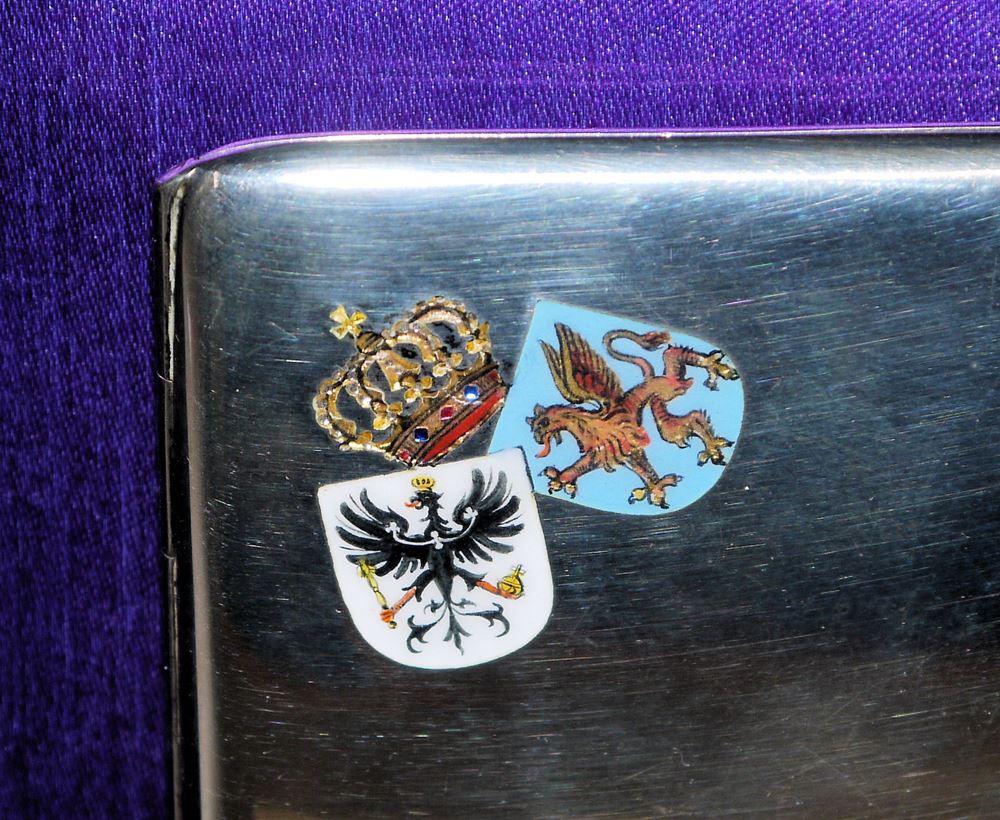 0809-Silbernes Zigarettenetui mit Allianzwappen, datiert 1921
