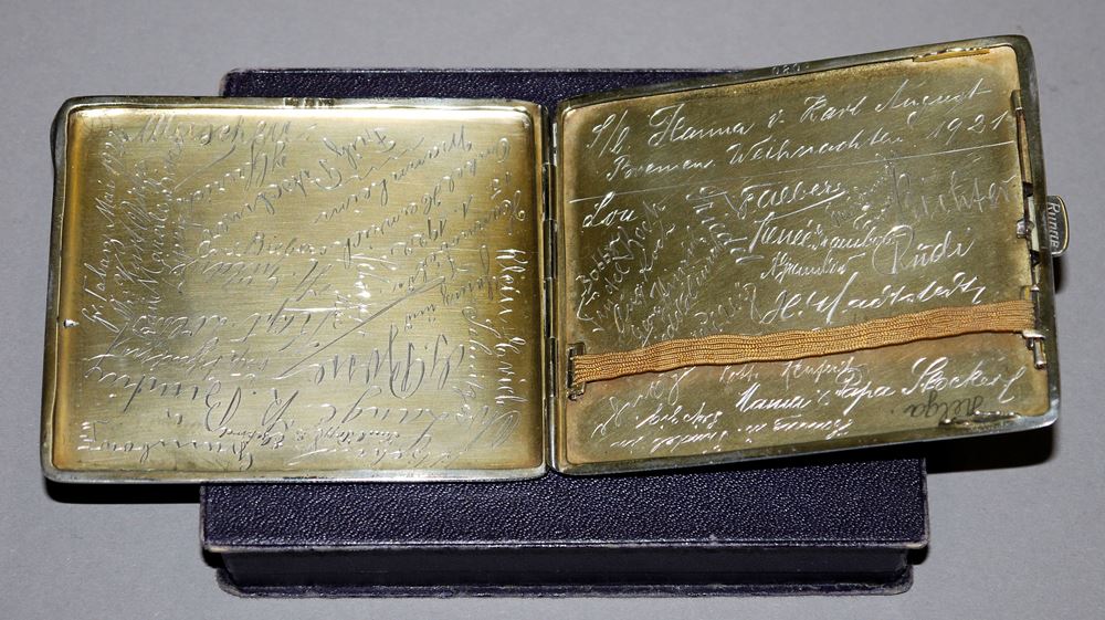 Silbernes Zigarettenetui mit Allianzwappen, datiert 1921