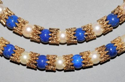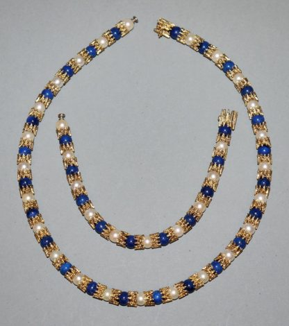 Zweiteiliges Designer-Schmuckset mit Perlen und Lapislazuli, Gold