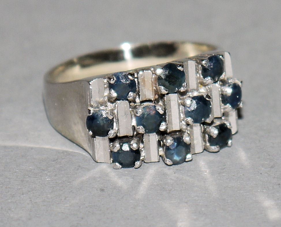 18kt Weißgold, teilmattiert, besetzt mit 10 blauen Saphiren, Gr. 54, 5,82 g