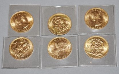 6 Goldmünzen Sovereign, Elisabeth II. 1962-68, Großbritannien