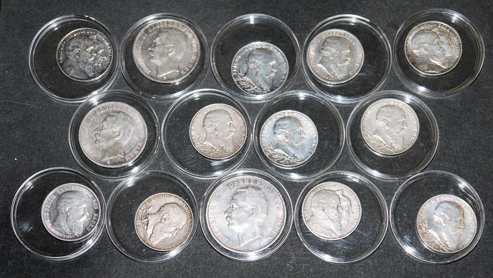 Münzsammlung mit 14 Silbermünzen, Baden