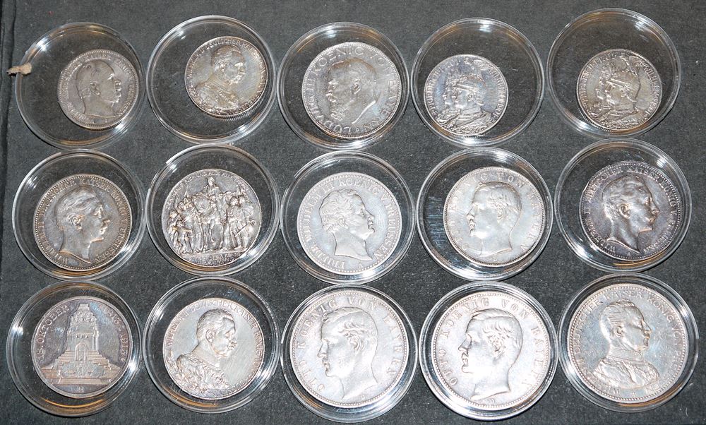 Münzsammlung mit 15 Silbermünzen, Preußen und Bayern