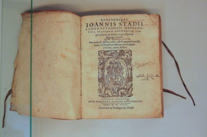 Antiquarisches zur Astronomie: Ephemerides von Johannes Stadius von 1581, selten! Ephemerides Ioannis Stadii Leonnouthensis mathematici, secundum Antuuerpiae longitudinem, ab anno 1554. vsque ad annum 1606. Iam recèns ab auctore auctae adiecto quoque Canone sinuum, vel semissium rectarum, in circulo subtensarum, eodem auctore, apud haeredes, Coloniae Agrippinae, Arnoldi Birckmanni, 1581, im Pergament