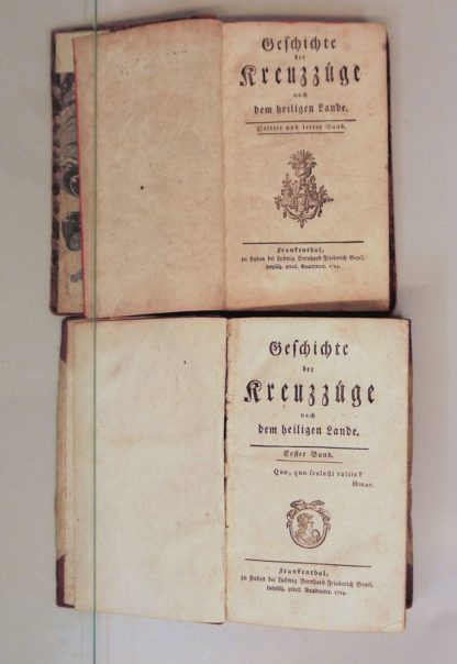 Wilhelm Friedrich Heller, Geschichte der Kreuzzüge nach dem Heiligen Lande Erster und Zweeter Band sowie Dritter und letzter Band, Frankenthal, Gegel, 1784, 333 +336 S. und 356 S., mit Vignetten, im Halbleder