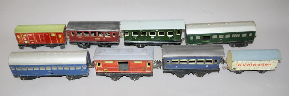 Eisenbahnkonvolut Spur 0, Lokomotiven u. Wägen, 30 Teile
