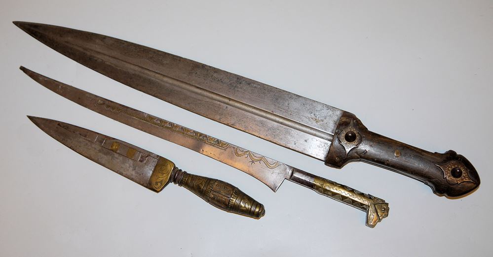 1024-Ein kaukasischer Kindjal, eine algerische Flyssa und ein spanischer Puñal, drei Blankwaffen, alle 19. Jh.