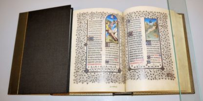 Das Stundenbuch des Duc de Berry, das Meisterwerk der Brüder Limburg, 225 Seiten, 172 farbige Miniaturen, Goldschnitt, brauner Ledereinband mit Goldprägung, zusammen mit dem Kommentarband von Eberhard König in Acrylglas-Kassette, limitierte Auflage Nr. 384/980 des Faksimile Verlags Luzern 2003, tadellos erhaltenes Exemplar
