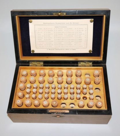 Homöopathische Hausapotheke in Holzkasten, 19. Jh.