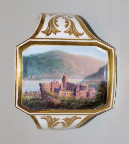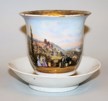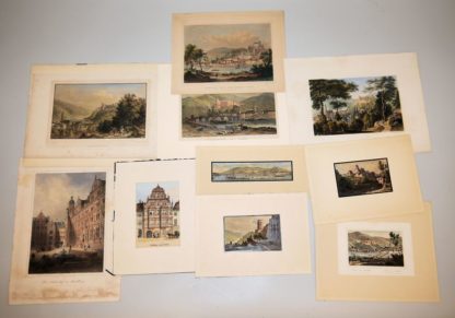 1056-Heidelbergensia: Zwei Porzellane, eine Sammlung Aquatinta- Radierungen des 19. Jhs. und ein Modellfässschen um 1900