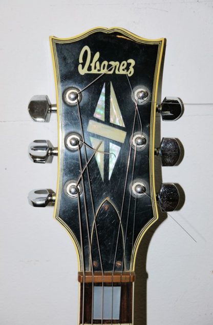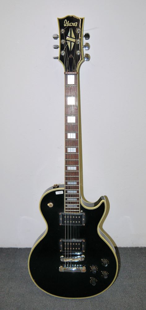 Rarität für Kenner*Innen: eine Ibanez "Black Beauty" 2350 noch mit "Open-Book"-Kopfplatte und "Diamond"-Logo sowie ohne aufschrift "Custom", Palisander-Griffbrett, zwei Humbucker mit Inbus-Schraubung (DiMarzio P90 ?), die Poti-Knöpfe habe keine Metalleinlagen mehr, das Schlagbrett wurde entfernt, rückseitig "Made in Japan", technisch einwandfrei, mäßig bespielter Zustand, rückseitig im Bereich der "Gürtelschnalle" rückseitig stärker verkratzt, und am Kopf eine Abplatzung, mit einem etwas Vintage- Holzkoffer (für Detailinformationen bitte im Rahmen der Vorbesichtigung melden)