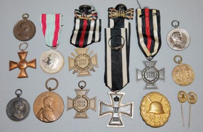 Nachlass bestehen aus: Eisernes Kreuz 2. Klasse 1914, Hessen Medaille für Tapferkeit, Verwundetenabzeichen in Gold dazu zwei Miniaturen, drei Kriegsteilnehmerkreuze, Medaille 1897, Medaille 1870/71, Preußen Kreuz für 15 Jahre Dienstzeit, patriotischer Ring WK I und drei Medaillen Österreich