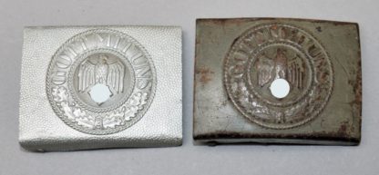 Zwei Koppelschlösser des Heeres aus Eisen und Aluminium, WK II