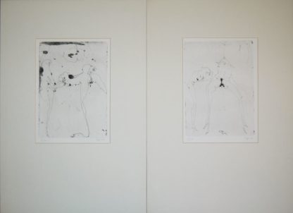 Zum Werk: Der Zyklus zählt zu den bedeutendsten Graphikserien in Janssens Frühwerk und gehört zu der Reihe der "kleinen Radierungen", die in den Anfängen der 60er Jahre entstanden sind. Zart gezeichnete, von Intervallen durchsetzte Umrisse, in denen sich die Liebesspiele vollziehen. In Anlehnung an die Radierungen James Ensors, dessen filigraner, aufgelöster Graphikstil Janssen zu dieser Zeit besonders beeinflusste, scheinen sich die Körper wie Gespinste in der Fläche zu verlieren. In L’Heure de Mylène wird die radierte Linie zur Provokation: Aggressiv in der Verrenkung der Gliedmassen sind die Figuren in ihrer Haltung erstarrt. Janssen spielt mit der Kargheit der Linie, spannt Fäden wie Tentakeln, mit denen sich die Protagonisten im Netz der Liebe verspannen. (Quelle: www.hamburger-kunsthalle.de/en/ausstellungen/horst-janssen-5)