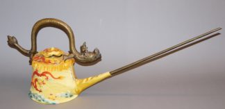 0564-Antike Yixing-Teekanne mit Bügelhenkeln, China, Qing/Republik-Zeit um 1900