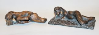 0304-Clemens Pasch, Liegender Rückenakt & Anonym, Zwei liegende Frauenakte, zwei Bronzeplastiken
